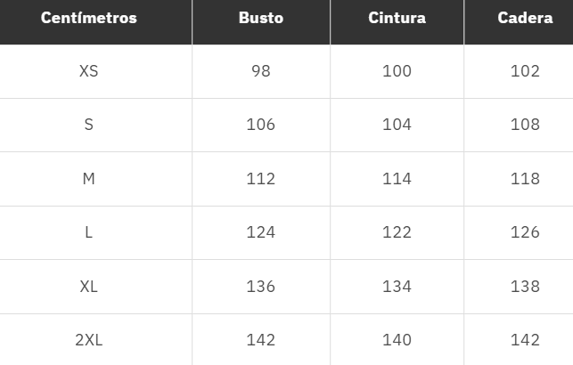 "Las medidas indicadas corresponden a las prendas, no al cuerpo. Para elegir tu talle, te recomendamos medir una prenda que te quede bien (de costura a costura en la parte más ancha) y comparar esa medida con nuestra tabla para encontrar el talle correcto."