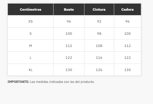 🚨IMPORTANTE: las medidas indicadas corresponden al tamaño de las prendas, por lo que recomendamos que para elegir tu talle midas una prenda que te quede bien y esa medida la traslades a la tabla para elegir tu talle correcto. Los talles son amplios.