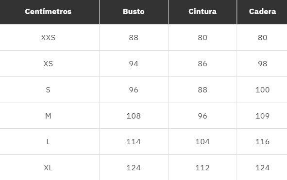 "Las medidas indicadas corresponden a las prendas, no al cuerpo. Para elegir tu talle, te recomendamos medir una prenda que te quede bien (de costura a costura en la parte más ancha) y comparar esa medida con nuestra tabla para encontrar el talle correcto."