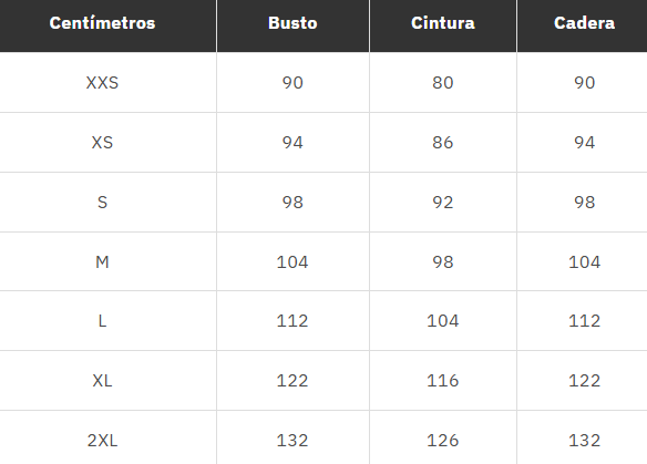 "Las medidas indicadas corresponden a las prendas, no al cuerpo. Para elegir tu talle, te recomendamos medir una prenda que te quede bien (de costura a costura en la parte más ancha) y comparar esa medida con nuestra tabla para encontrar el talle correcto."