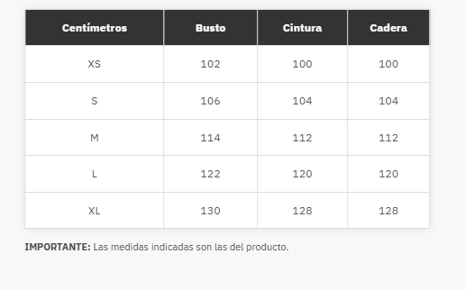 🚨IMPORTANTE: las medidas indicadas corresponden al tamaño de las prendas, por lo que recomendamos que para elegir tu talle midas una prenda que te quede bien y esa medida la traslades a la tabla para elegir tu talle correcto. Los talles son amplios.