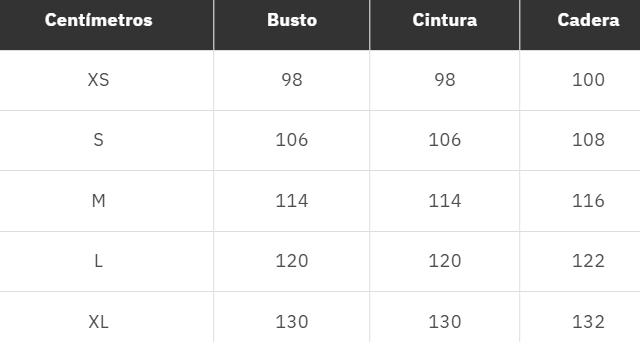 "Las medidas indicadas corresponden a las prendas, no al cuerpo. Para elegir tu talle, te recomendamos medir una prenda que te quede bien (de costura a costura en la parte más ancha) y comparar esa medida con nuestra tabla para encontrar el talle correcto."
