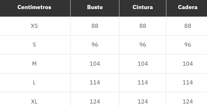 "Las medidas indicadas corresponden a las prendas, no al cuerpo. Para elegir tu talle, te recomendamos medir una prenda que te quede bien (de costura a costura en la parte más ancha) y comparar esa medida con nuestra tabla para encontrar el talle correcto."
