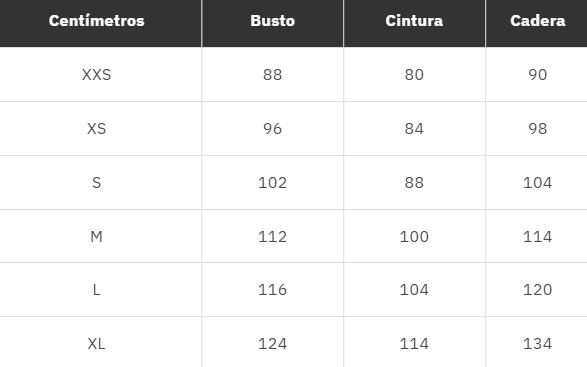"Las medidas indicadas corresponden a las prendas, no al cuerpo. Para elegir tu talle, te recomendamos medir una prenda que te quede bien (de costura a costura en la parte más ancha) y comparar esa medida con nuestra tabla para encontrar el talle correcto."