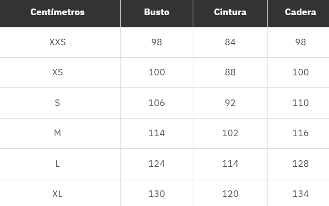 "Las medidas indicadas corresponden a las prendas, no al cuerpo. Para elegir tu talle, te recomendamos medir una prenda que te quede bien (de costura a costura en la parte más ancha) y comparar esa medida con nuestra tabla para encontrar el talle correcto."