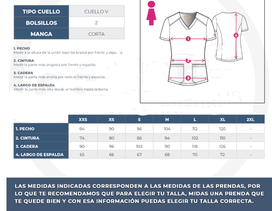 Las medidas indicadas corresponden a las medidas de las prendas, por lo que te recomendamos que para elegir tu talle, midas una prenda que te quede bien y con esa información puedas elegir tu talle correcto.
